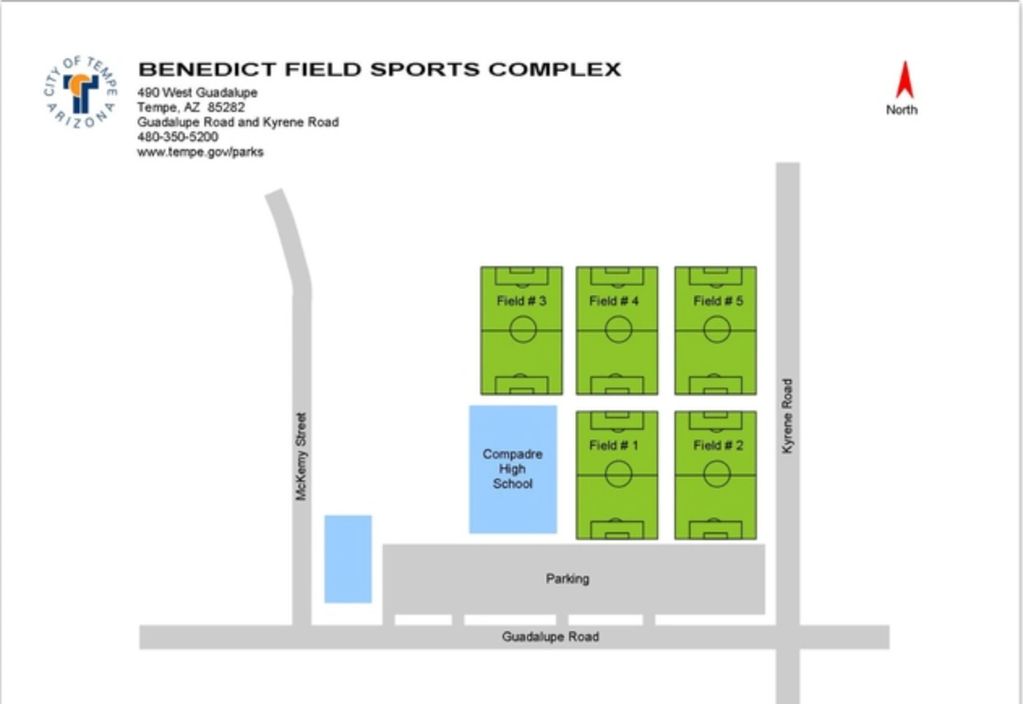 Click for Field Map. Fancy_box Benedict Soccer Fields. Tempe Sports Complex Field Map An arrow pointing left Back SportsEngine SportsEngine Sign In skip GamePractice Fields Field Maps.